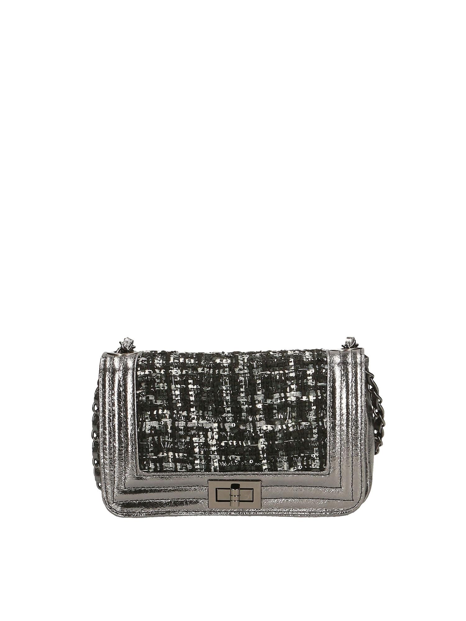 Damen-Umhängetasche mit Drehverschluss. eine mit Reißverschluss-Innentaschen. fehlende Außentaschen. verstellbarer Schultergurt aus Leder. fehlender Griff. ein Innenfach. Außenmaterial. Gefüttert mit 70 % Baumwolle, innen 30 % Polyester. Maße: 20x13x8 cm. Hergestellt in Italien