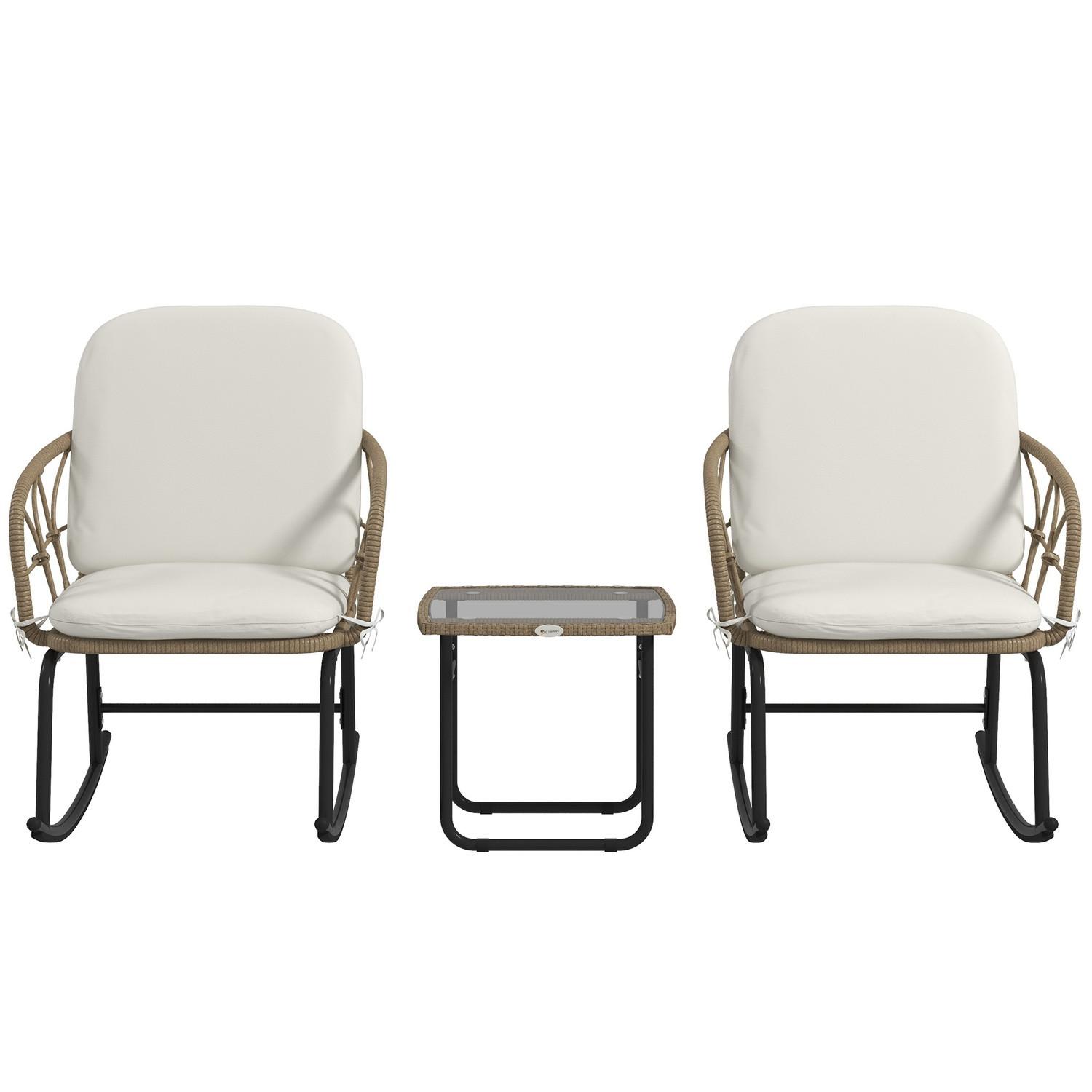 Northio, 3-Tlg. Ratten Schaukelstuhl-Set, Gartenmöbel-Set Mit 2 Schaukelstühlen, 1 Couchtisch, Gartensitzgruppe Mit Kissen