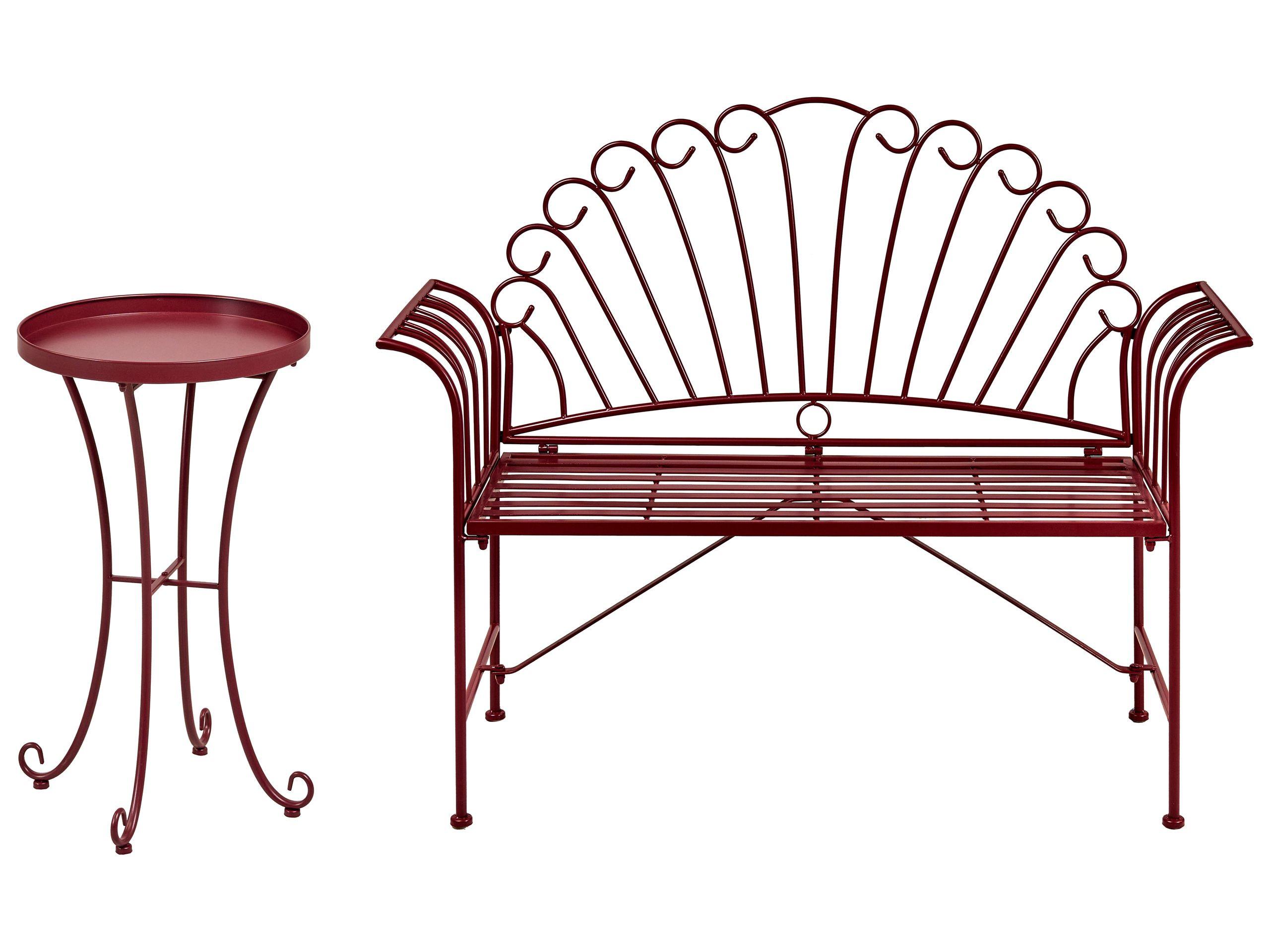 Zauberhafte filigrane 2-Sitzer Gartenbank mit passendem Beistelltisch. Verleihen Sie Ihrem Garten, Balkon oder Ihrer Terrasse mit diesem originellen Gartenset einen ganz besonderen Vintage-Charme. Die Metall-Sitzbank-Set verfügt über geschwungene Armlehnen, eine verschnörkelte Rückenlehne und passende Untergestelle. Stellen Sie den Beistelltisch neben die Bank, um zusätzlichen Platz für Ihren Kaffee und Ihre Zeitschriften zu gewinnen. Dank ihres zeitlosen, französischen Designs bildet das Set eine fantastische Ergänzung für jeden Outdoorbereich und bietet dabei auch bequem Platz für bis zu zwei Personen.