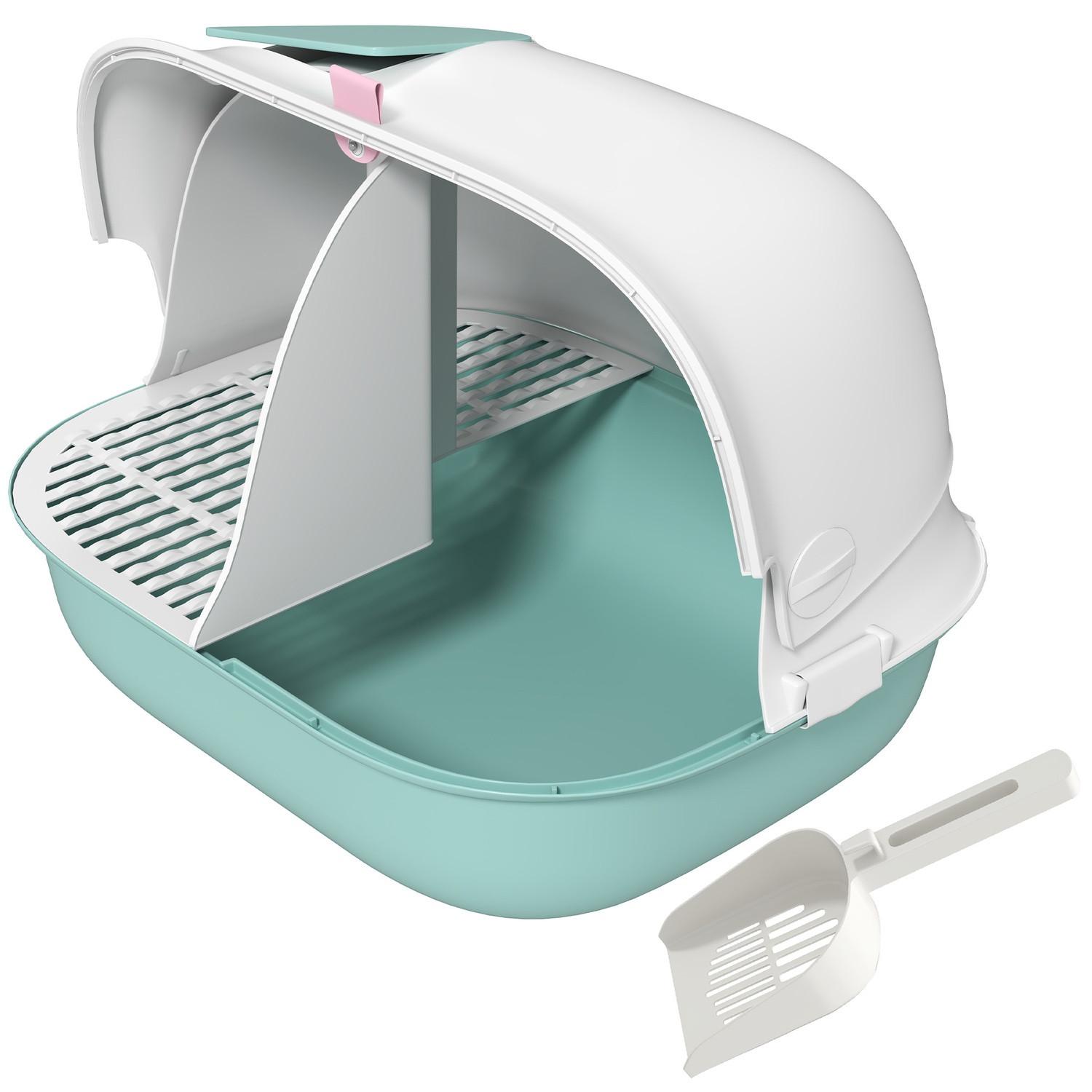 Entdecken Sie die Katzentoilette mit einem innovativen, halb offenen Kanal und Sandabfalllöchern, die Ihr Heim sauber halten. Das geschlossene Äußeres und die Frontklappe inklusive Schaufel der Katzentoilette erleichtern die Reinigung enorm. Ein behaglicher, privater Rückzugsort für Katzen bis 3,5 kg.