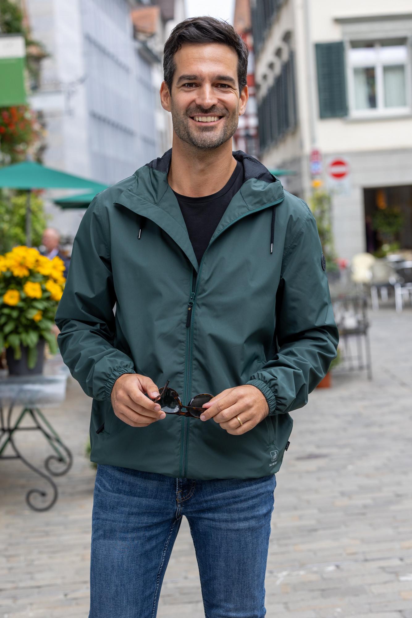 Diese leichte Freizeit- und Regenjacke lässt sich platzsparend in der linken Tasche verstauen, damit man stets darauf vorbereitet ist, wenn das Regenwetter überrascht.