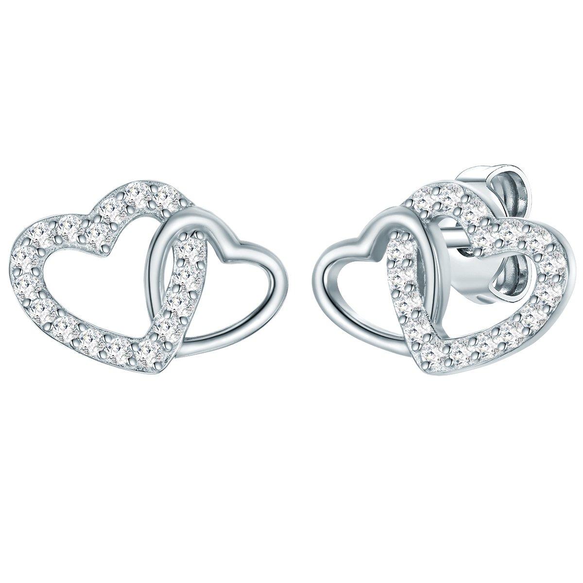 Diese Herz-Ohrstecker des Labels Rafaela Donata zaubern garantiert ein Lächeln ins Gesicht verliebter Fashionistas. Die schlichten Fassungen ineinander verschlungener Herzen im Cutout-Design sind aus hochwertigem 925er Sterlingsilber gefertigt und partiell mit glitzernden Zirkoniakristallen besetzt. Der präzise Schliff lässt das Licht in unzähligen Facetten funkeln, so dass die Ohrringe jedem Outfit romantischen Glamour verleihen. Eine hochglanzpolierte Rhodiumschicht schützt das Silber vor dem Anlaufen und intensiviert den strahlend hellen Silberglanz. Ein praktischer Steckverschluss sorgt für hohen Tragekomfort.