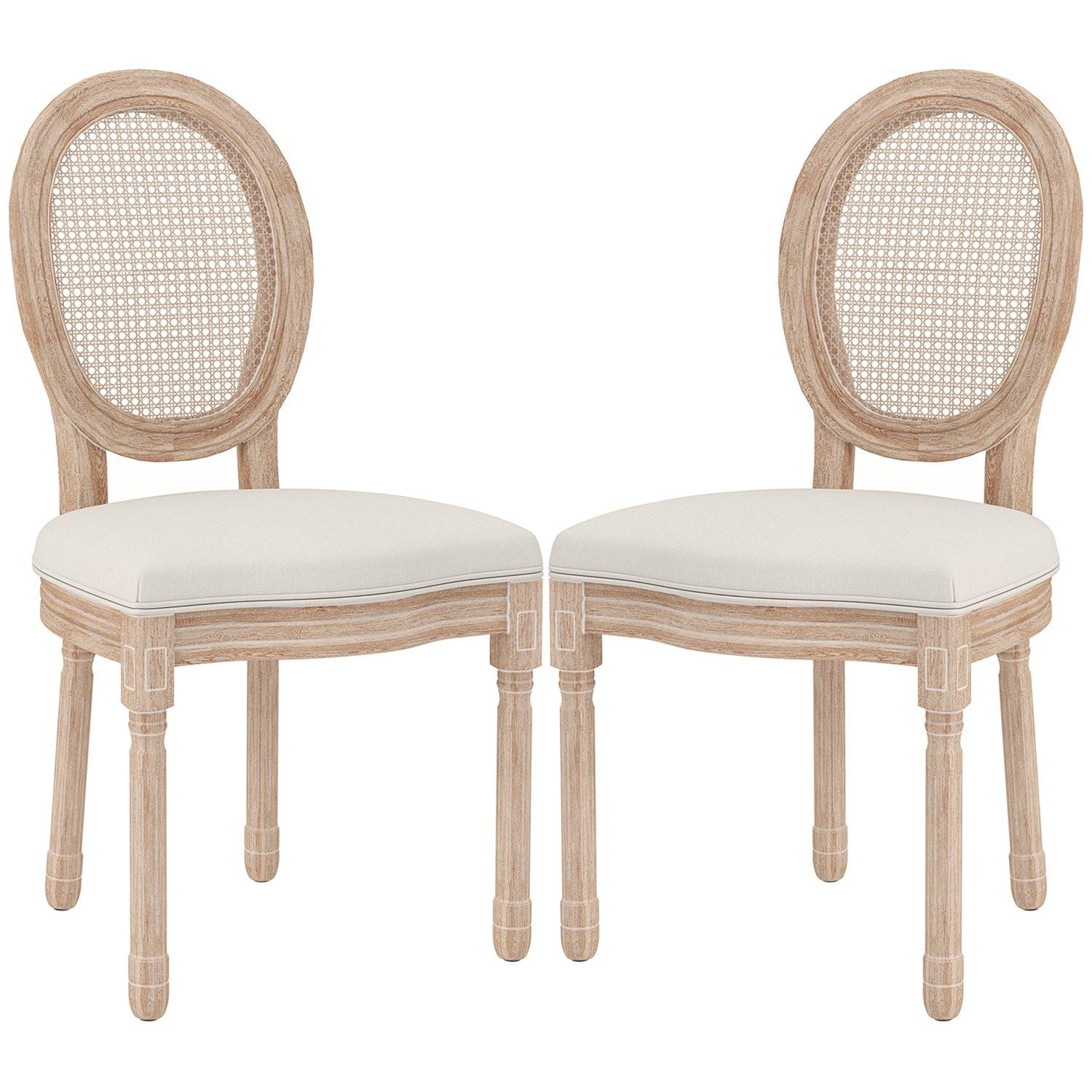 Northio, Esszimmerstühle 2Er-Set Küchenstuhl Mit Rückenlehne, Leinen- & Rattanoptik, Holzbeine, Cremeweiß
