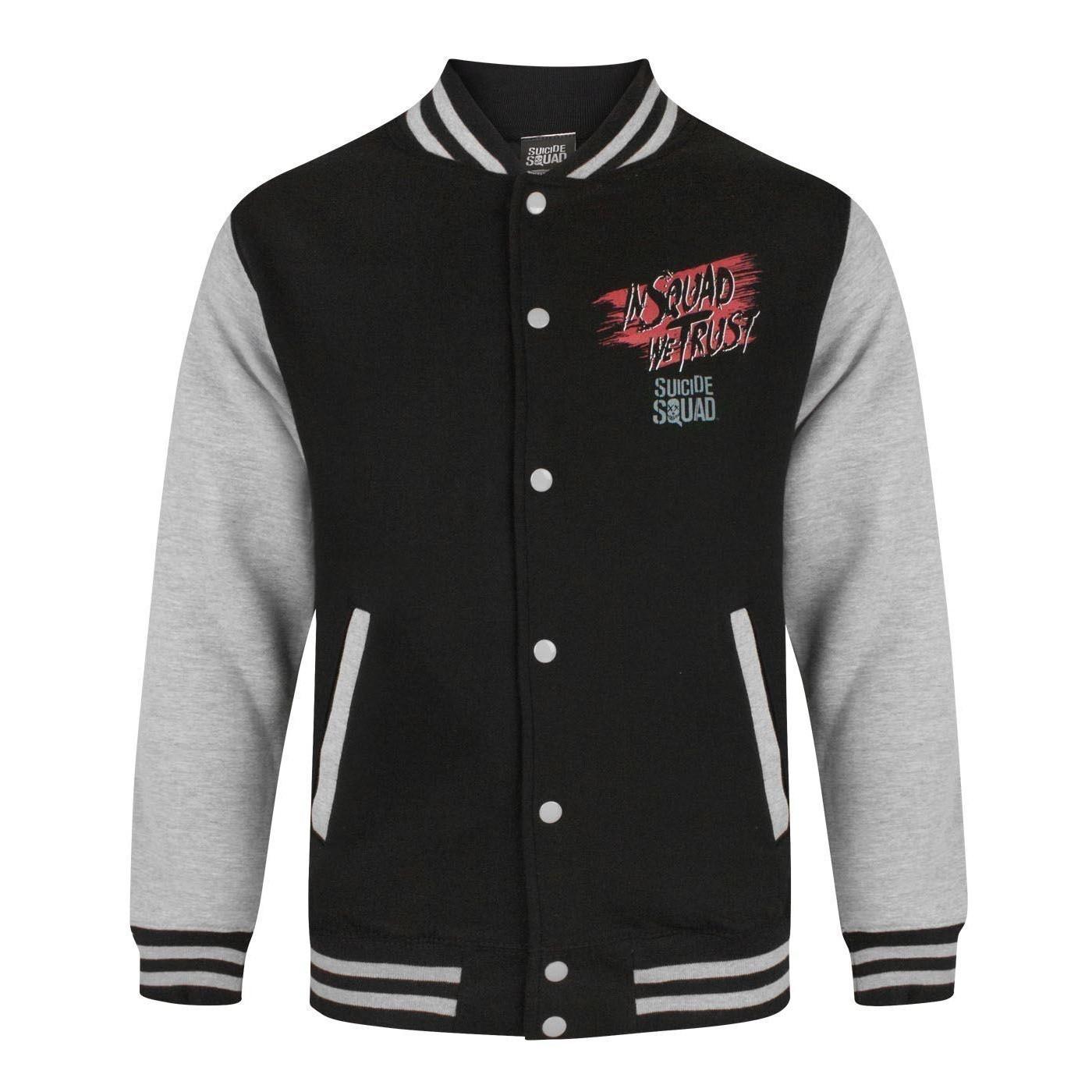 Diese Varsity Jacke präsentiert sich im klassischen US-College-Stil und sorgt für einen lässigen und sportlichen Look. Sie verfügt über einen Druckknopfverschluss sowie gerippte Bündchen und Saum mit Streifendetails, die für eine bequeme Passform und eine zeitlose Ästhetik sorgen. Die Jacke ist mit einem grafischen Aufdruck auf der Brust verziert, der eine unverwechselbare Note verleiht.