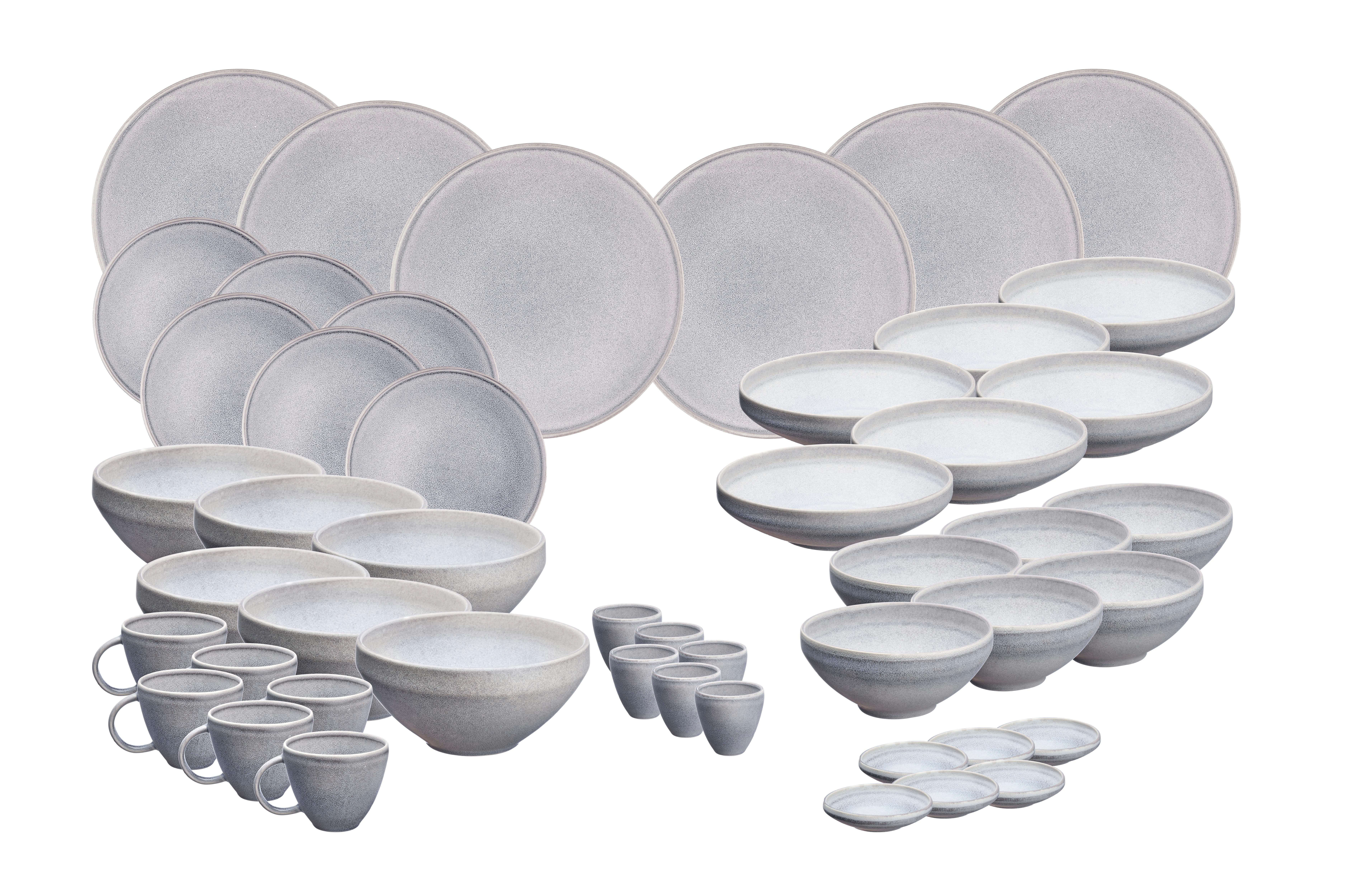 BJÖRN Geschirr-Set STONE - 48 Stück - Mondgrau