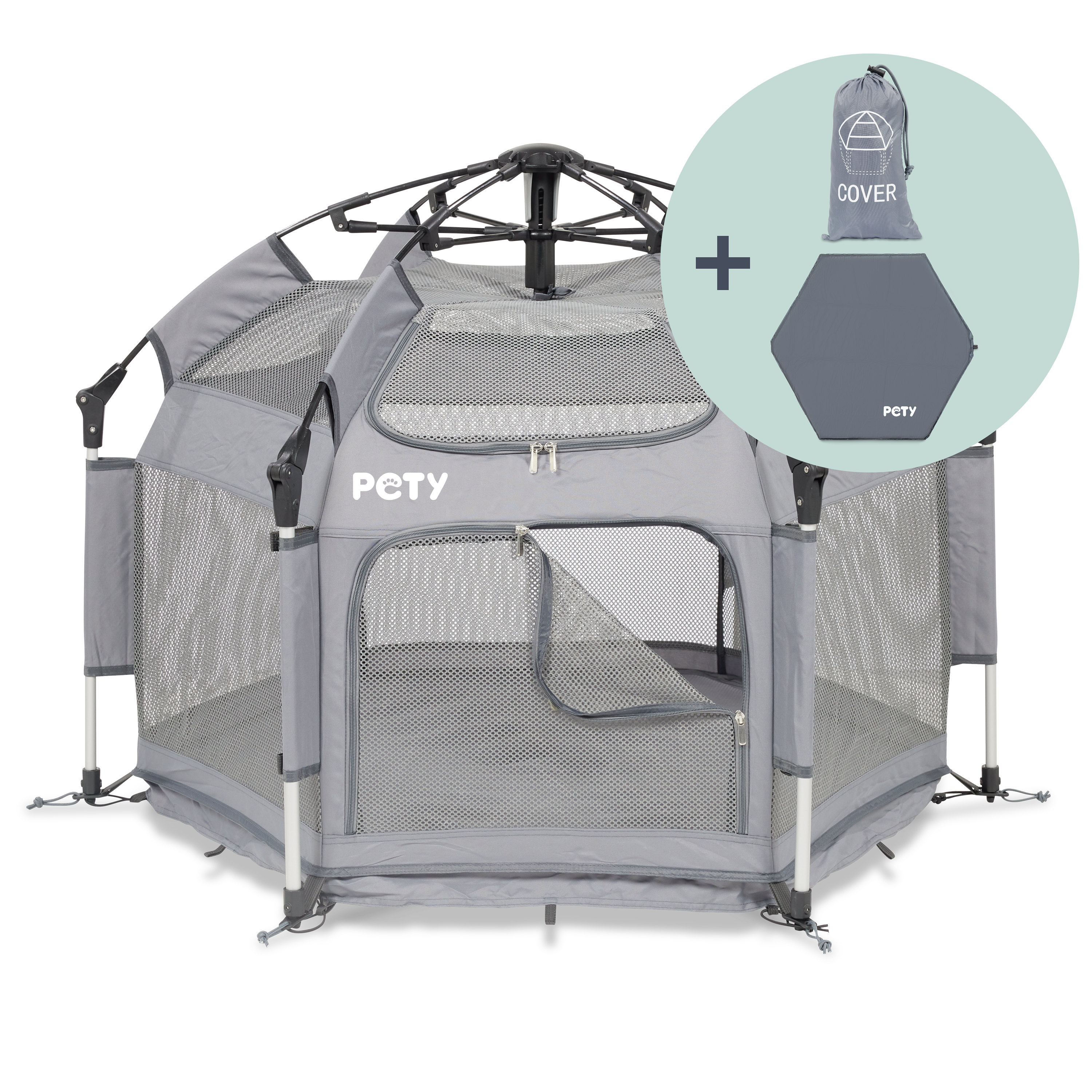PETY, Set PETY Laufstall für Hunde klein, mit Bodenmatte und Dach