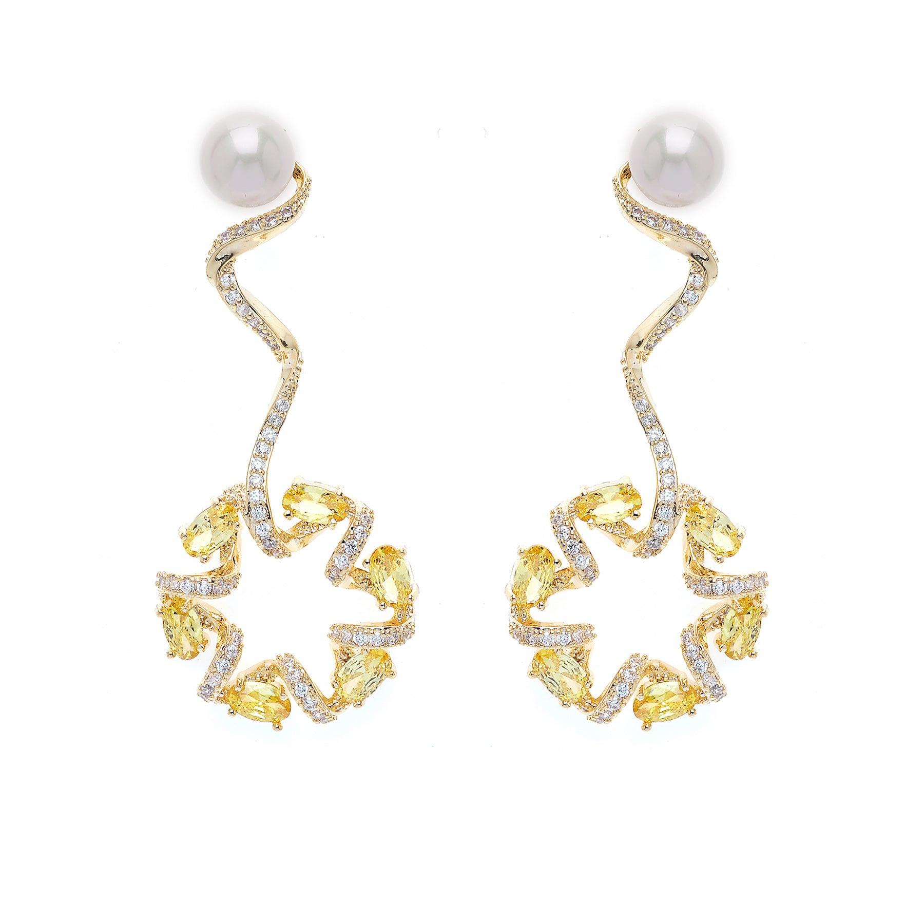 AVANT-GARDE PARIS Zarte Gelbe Wirbel-Tropfenohrringe