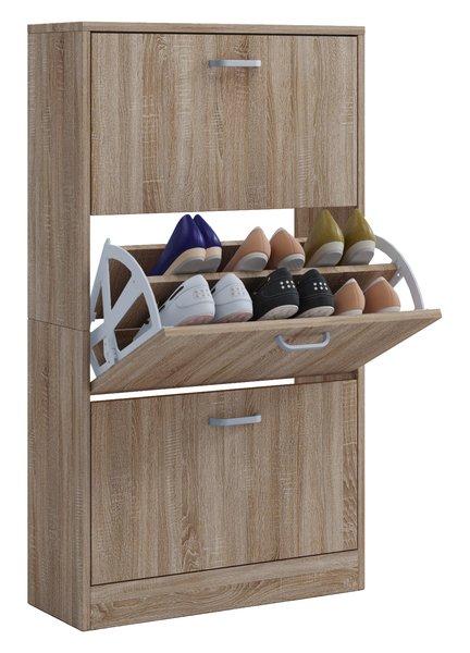 Der Schuhschrank "Sipos L" ist ein kleines Raumwunder mit viel Stauraum. Jedes der drei Fächer hat eine Fachunterteilung, damit Sie Ihre Schuhe platzsparend und übersichtlich verstauen können.