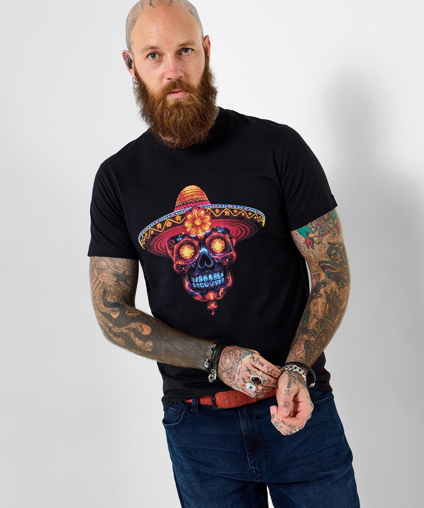 Hauchen Sie Ihrem Outfit Leben ein: dieses T-Shirt mit Totenkopf-Print begeistert durch leuchtende Neon-Akzente.