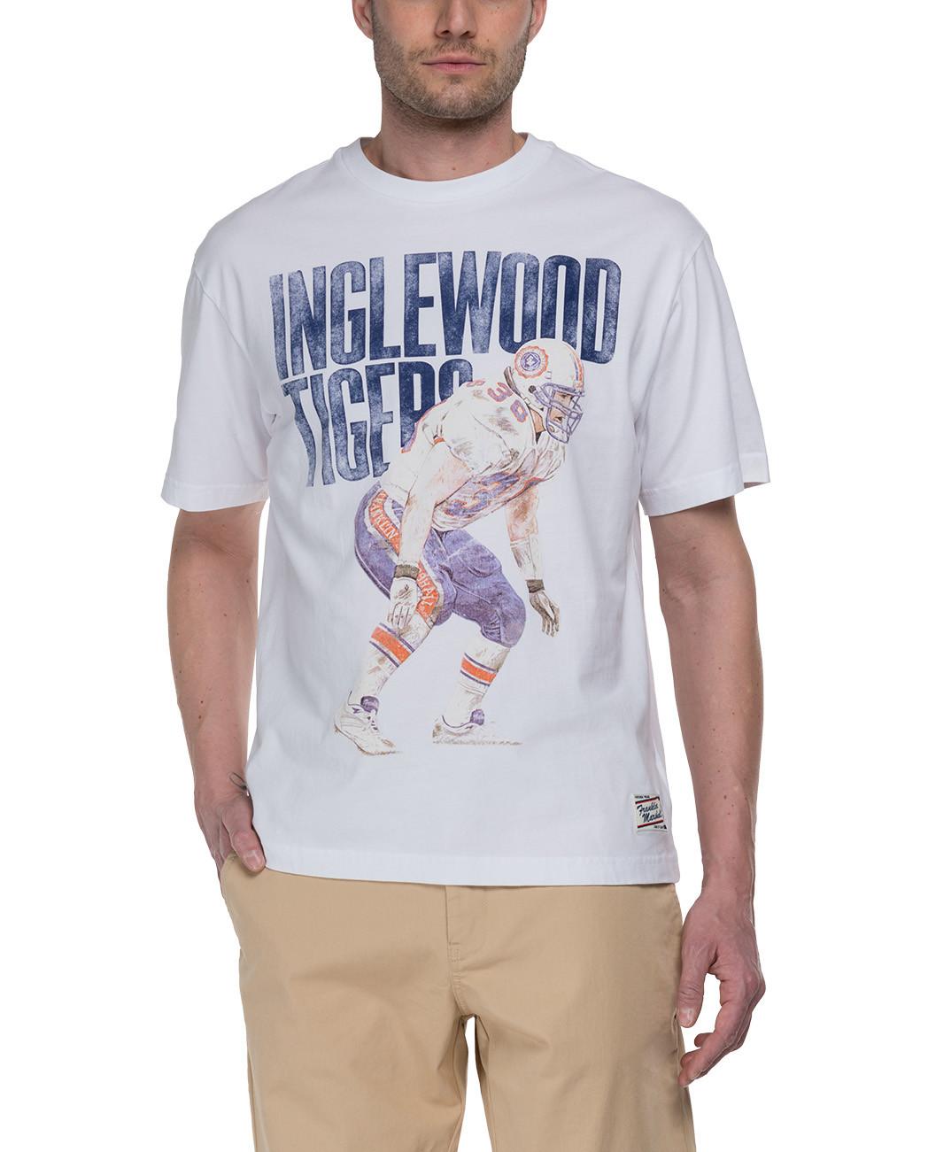 Dieses T-Shirt verfügt über einen auffälligen Grafikdruck auf der Vorderseite, der einen American-Football-Spieler mit dem Text „INGLEWOOD TIGERS“ zeigt. Der klassische Rundhalsausschnitt und die kurzen Ärmel machen es zu einer vielseitigen Ergänzung für jede Freizeitgarderobe. Das Design ist vom amerikanischen Vintage-Sportstil inspiriert und mit einem Made-in-Italy-Ansatz neu interpretiert.