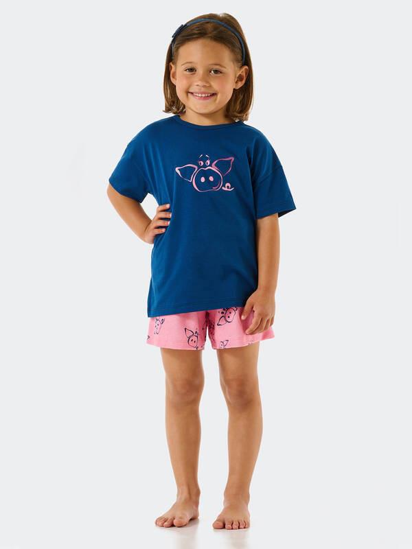 Kurzarm-Oberteil mit Rundhals, lustiges Schweinchen-Kontur-Print auf der Brust