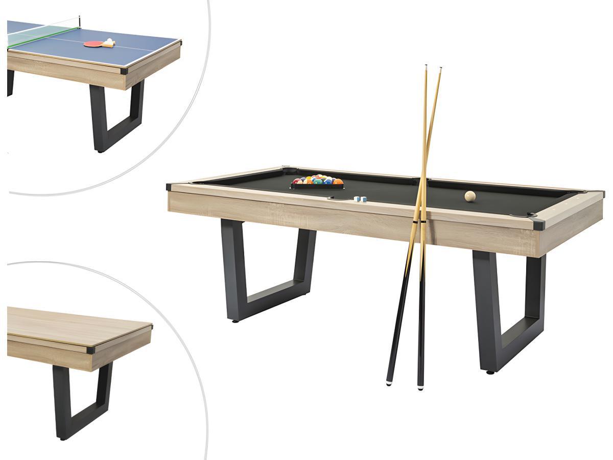 Vente-unique, Multifunktionstisch - Billard & Tischtennis - 213,4 x 111,8 x 78,5 cm - Holzfarben hell & Schwarz - MELIAN