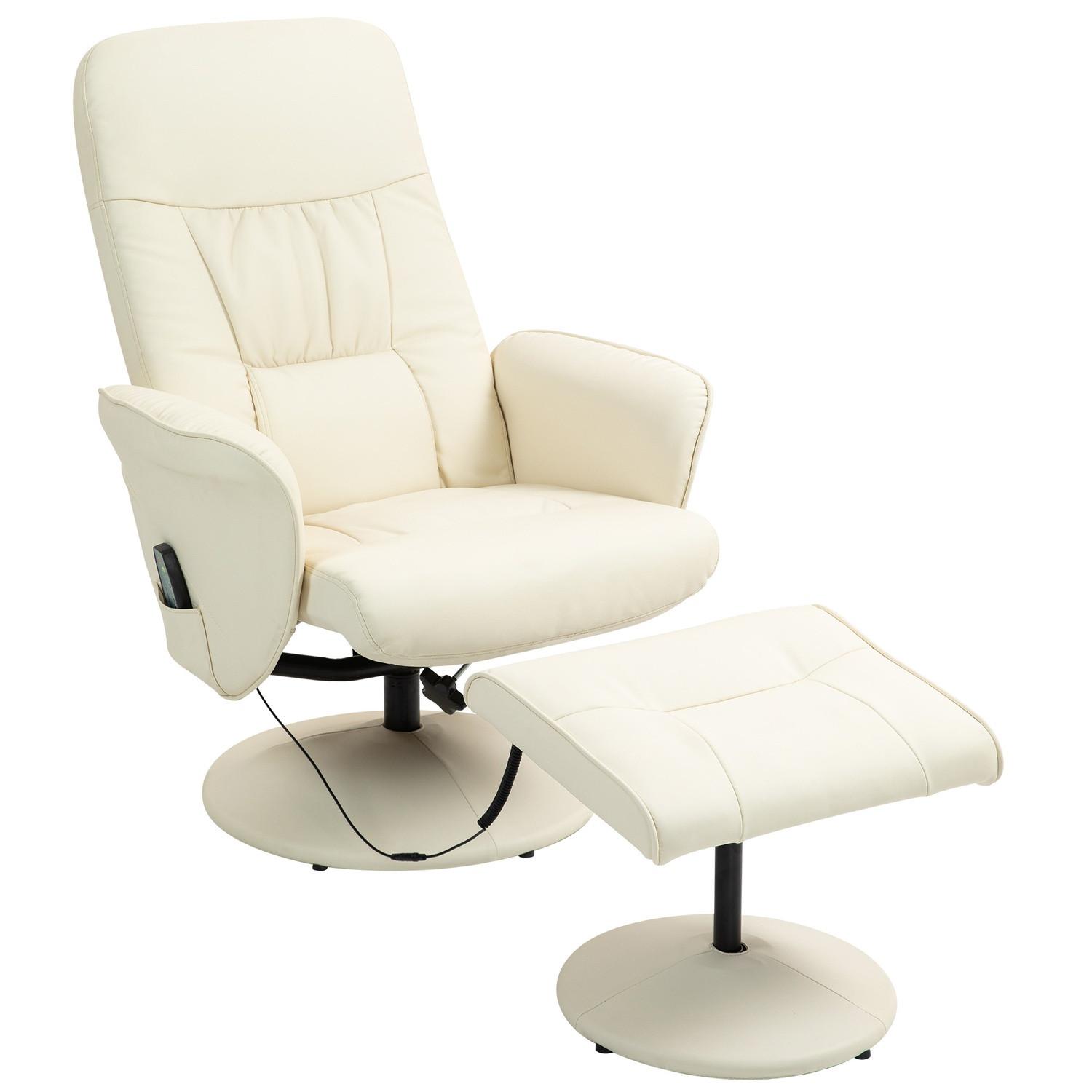 Northio Relaxsessel mit Fußhocker, Elektrischer Massagesessel mit Liegefunktion, 10 Massagepunkte, Drehbarer Fernsehsessel mit Seitentasche, Fernbedienung, Kunstleder, Cremeweiß
