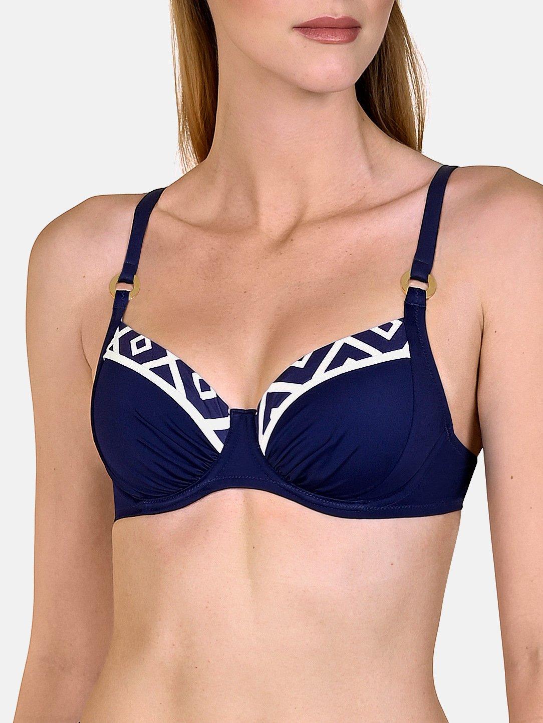 Dieses Bügel-Bikini-Oberteil aus der Kollektion Costa Rica bietet Funktionalität und Komfort mit seinem raffinierten und modernen geometrischen Muster. Die Körbchen sind mit Lycra Power gefüttert, bieten optimalen Halt und passen sich der Brust gut an. Es ist für diejenigen gedacht, die leichte Bademode suchen.