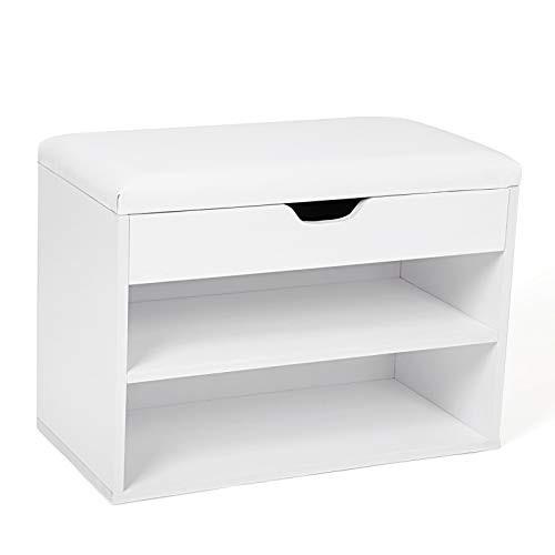 Pricenet Mattweiße Schuhbank aus Holz mit gepolstertem Sitz und Stauraum