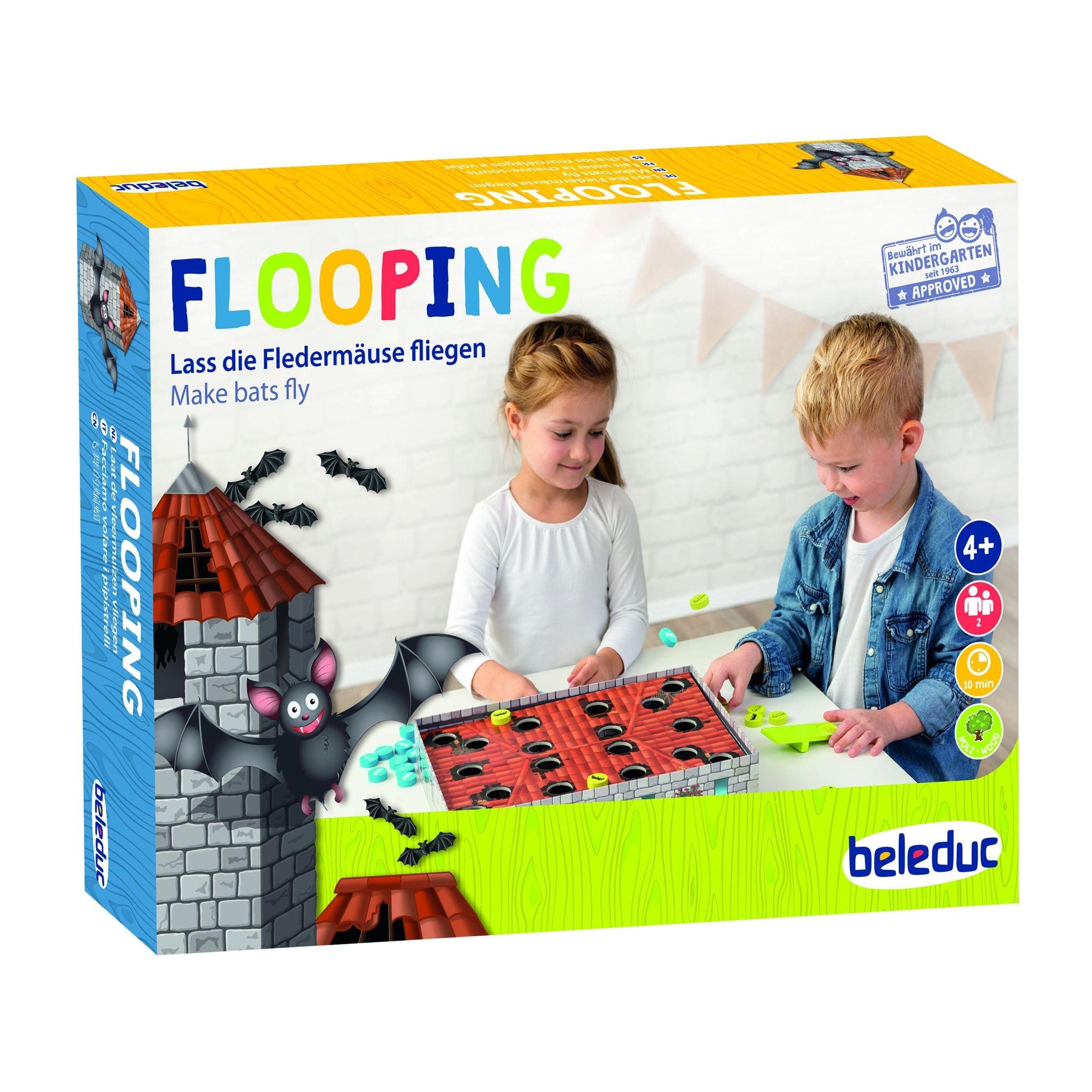 Entdecken Sie mit dem Spiel Flooping ein aufregendes Abenteuer für Kinder ab 4 Jahren. Hier ist Geschicklichkeit gefragt, während Fledermäuse durch die Luft wirbeln und versuchen, einen Platz in den zwölf Räumen der Burg zu finden. Das Spiel besteht aus 32 Teilen und ist ideal für 2 Spieler. Die Spieldauer beträgt etwa 30 Minuten.