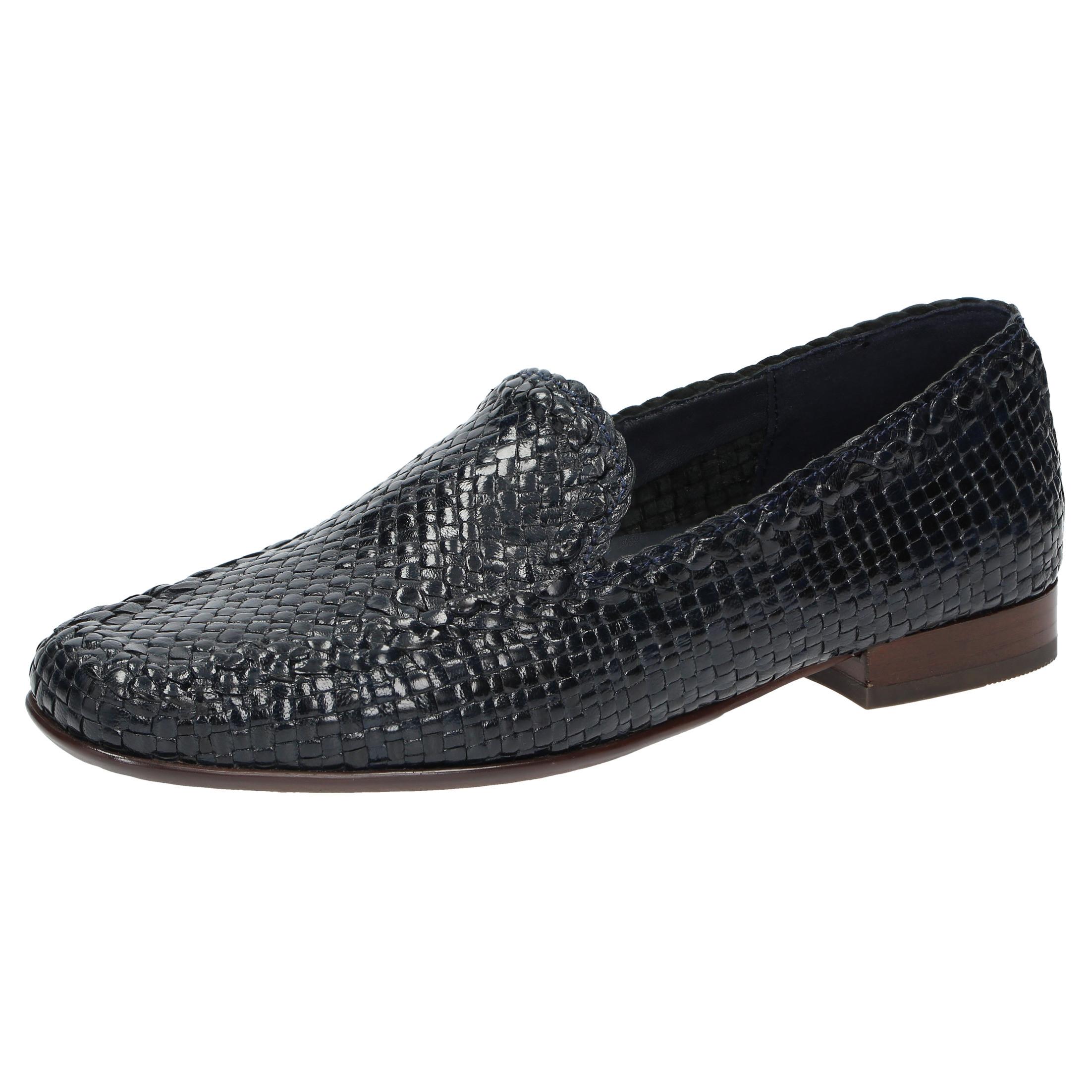 Dieser flache Damen Slipper ist aus weichem, geflochtenem Ziegenleder gefertigt und verfügt über eine kleine Bordüre am Schaftrand und an der Lasche. Es ist ein ungefütterter Damenschuh, ideal für optimales Barfuss-Tragen. Eine Besonderheit ist der Schaft, der aufwendig in Handarbeit direkt auf dem Leisten geflochten wird, um eine optimale Form zu erhalten. Der Slipper beinhaltet eine weich gepolsterte Kalbleder-Decksohle und eine weiche, feine Gummisohle mit leichter Absatzsprengung und Schuhweite F.