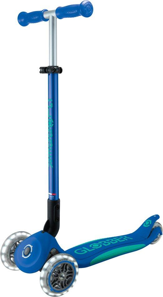 Globber Primo Foldable Plus Lights | Mini Scooter | Navy Blue - Emerald Green