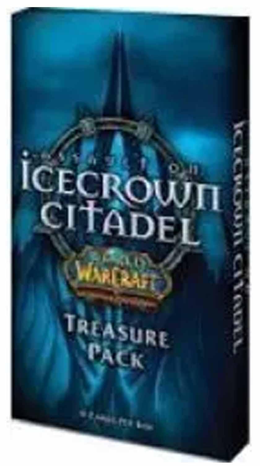 Assault on Icecrown Citadel Treasure Pack war eine Boosterserie des WoW TCG aus dem Jahre 2011 und orienterte sich an dem Wrath of the Lichking Addon. Jede Karte im Set ist Holografisch. Es gibt nicht mehr viele originalverpackte Treasure Packs (Sealed). Extrem seltene Loot Karten könnten sich in den Boostern befinden.