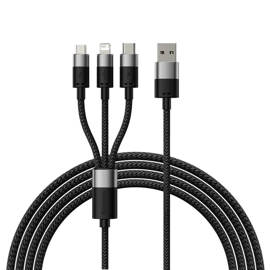 Baseus Baseus 3-in-1-USB-A-auf-USB-C-/Micro-/Lightning-Kabel, 1,2 m – Schwarz