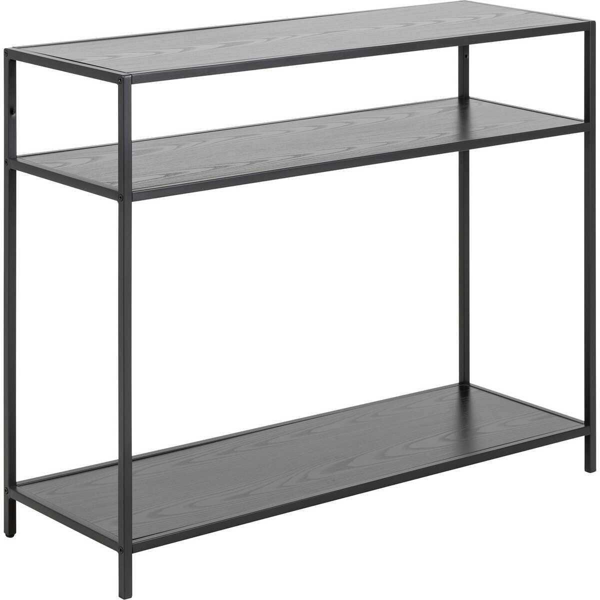Konsoltisch Multiple Bronx Melamin Esche Schwarz 2 Böden Gestell Metall pulverbeschichtet rau Schwarz matt 100x35x79 cmFarbe Gestell/Beine: Matt SchwarzFarbe Tischplatte: Schwarz Esche Tischrandform: gerade Bodenschutz: Plastik Fußkappen