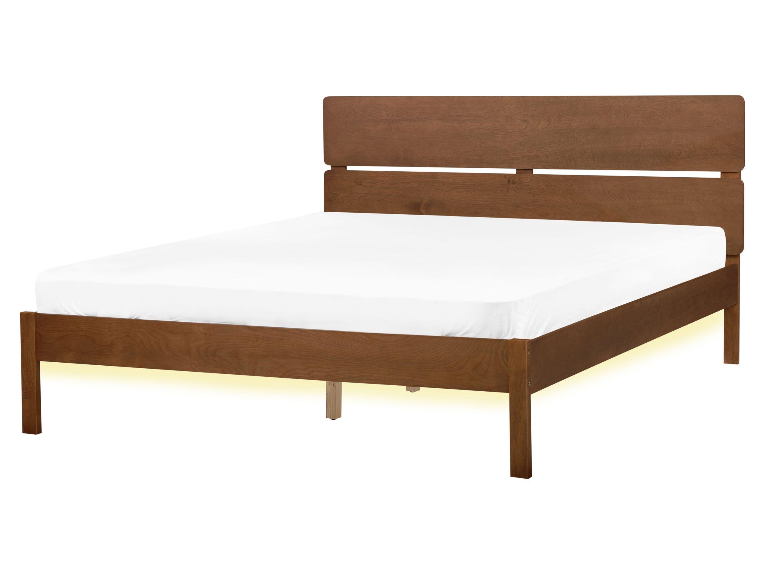 Beliani, Bett mit LED aus Gummibaumholz BOISSET