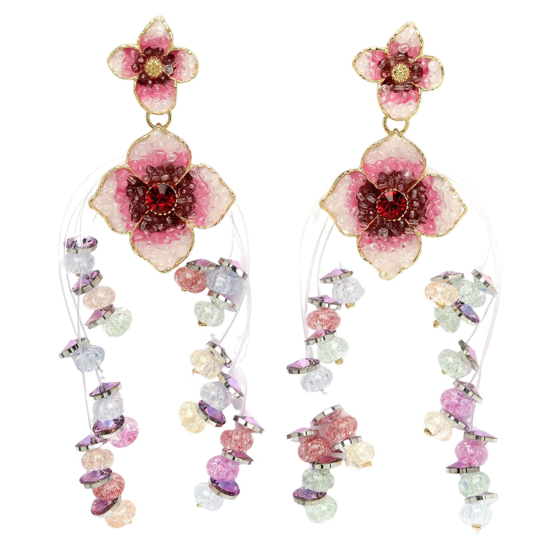 AVANT-GARDE PARIS, Diva Kollektion Doppelte Boho Florale Hängeohrringe