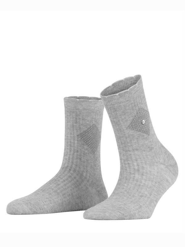 Diese modischen Rippsocken sorgen für einen wahren Feel-Good-Charakter. Sie verfügen über eine platzierte Raute im Schaft mit sommerlichem Stickmotiv und ein feminines Wellenbündchen.