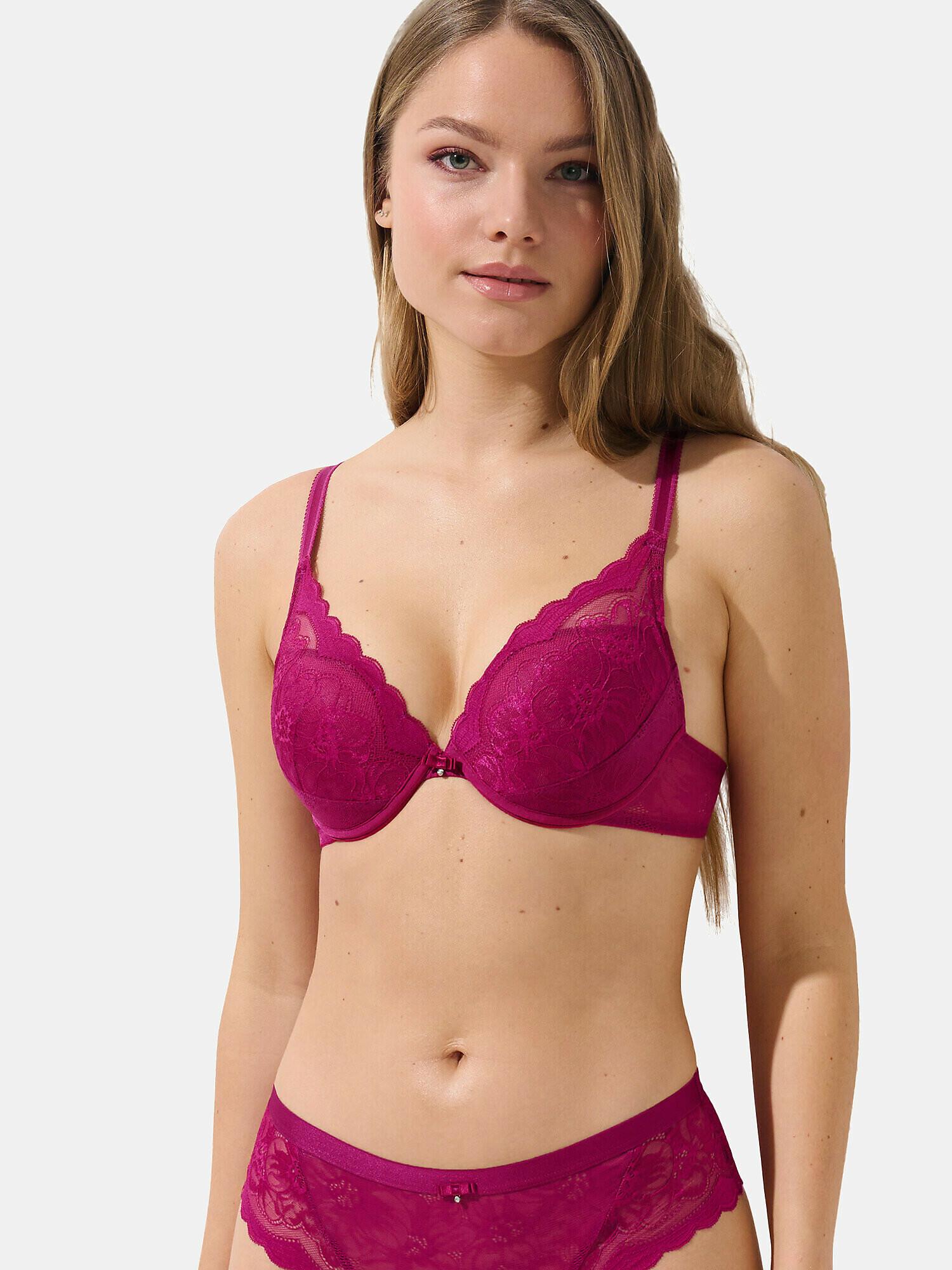 Der Push-up-BH Evelyn von Lisca verfügt über feine Spitze ohne zusätzliches Gummiband, wodurch er unter der Kleidung völlig unsichtbar ist. Dieses leichte und feminine Modell bietet täglichen Komfort und ist aus attraktiver, elastischer Spitze, geschnürt und aus weichem Strick gefertigt. Die Träger und Glitzerdetails verleihen der Dessous einen Hauch von Eleganz. Die Innenseite des BHs fühlt sich angenehm und samtig an, die Cups sind glatt und die Spitzendetails sind im Seitenteil eingearbeitet. Dieser nahtlose BH zeichnet sich unter Oberbekleidung nicht ab und ist somit die ideale Wahl für Liebhaberinnen zeitloser Dessous mit einem romantischen Touch.