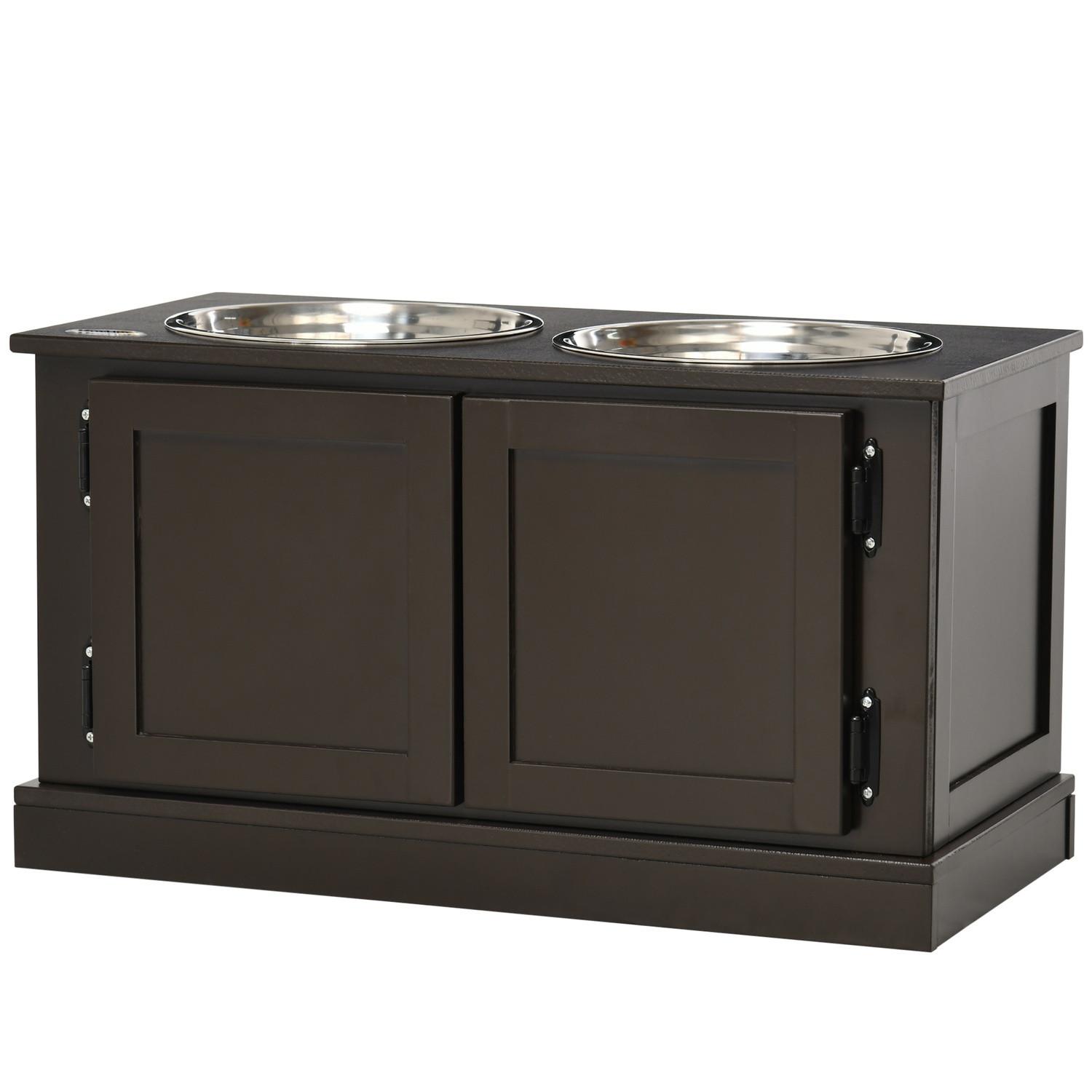 Northio, Hundenäpfe erhöht, mit Stauraum, 2 Schüsseln, für Große Hunde, Wassernapf, Fressnapf, Hundenapfständer, 60 cm x 30 cm x 34 cm, Kaffee