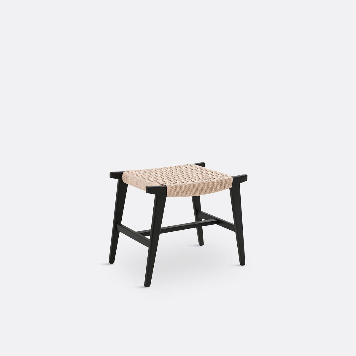 Der Hocker Hokito verbindet massives Eichenholz in Schwarz und handgearbeitetes Geflecht aus Papierschnur. Das Modell bereichert die Inneneinrichtung mit kunstfertiger Handarbeit und einem Hauch von Boho-Chic. Design by La Redoute Intérieurs.
