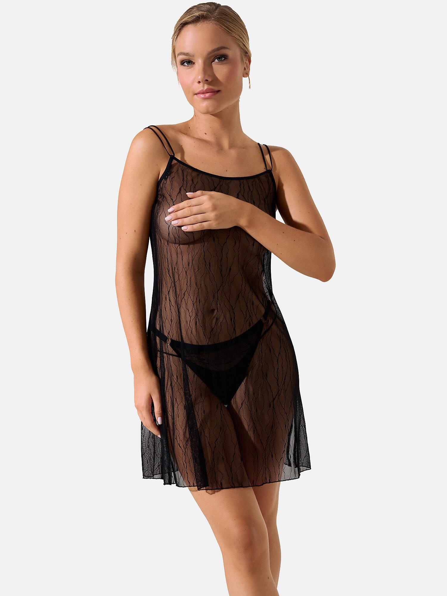 Das Nightscape Negligé von Lisca ist ein gewagtes und leicht zu tragendes Stück, das vollständig aus transparenter Spitze gefertigt und mit einer Paspelierung abgeschlossen ist. Es verfügt über Seitenschlitze für mehr Tragekomfort und einen gewagten Look, zusammen mit raffinierten, schmalen, verstellbaren Trägern. Dieses Stück kann als Nachtwäsche oder unter Oberbekleidung wie einem Unterkleid getragen werden.