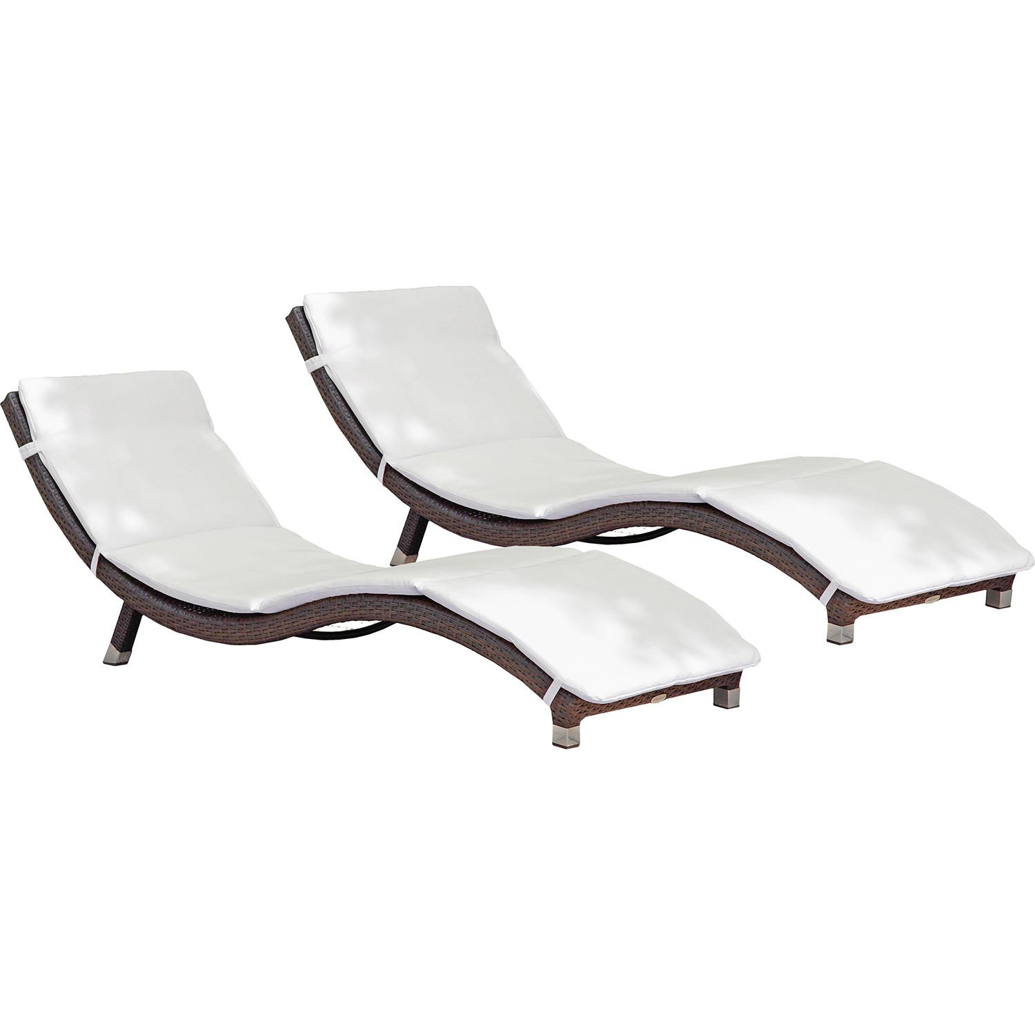 Hellgraues Aluminiumgestell für Stabilität und Langlebigkeit Coffee-farbenes Kunststoffgeflecht für eine stilvolle Optik und leichte Reinigung Mitgelieferte Creme-Auflage aus 100% Polyester für Extra-Komfort Verstellbare Rückenlehne für personalisierten Liegekomfort Ergonomisch geformt für optimalen Liegekomfort Set aus zwei Liegen inklusive Auflagen für doppelten Genuss Maximale Belastbarkeit bis zu 110 kg