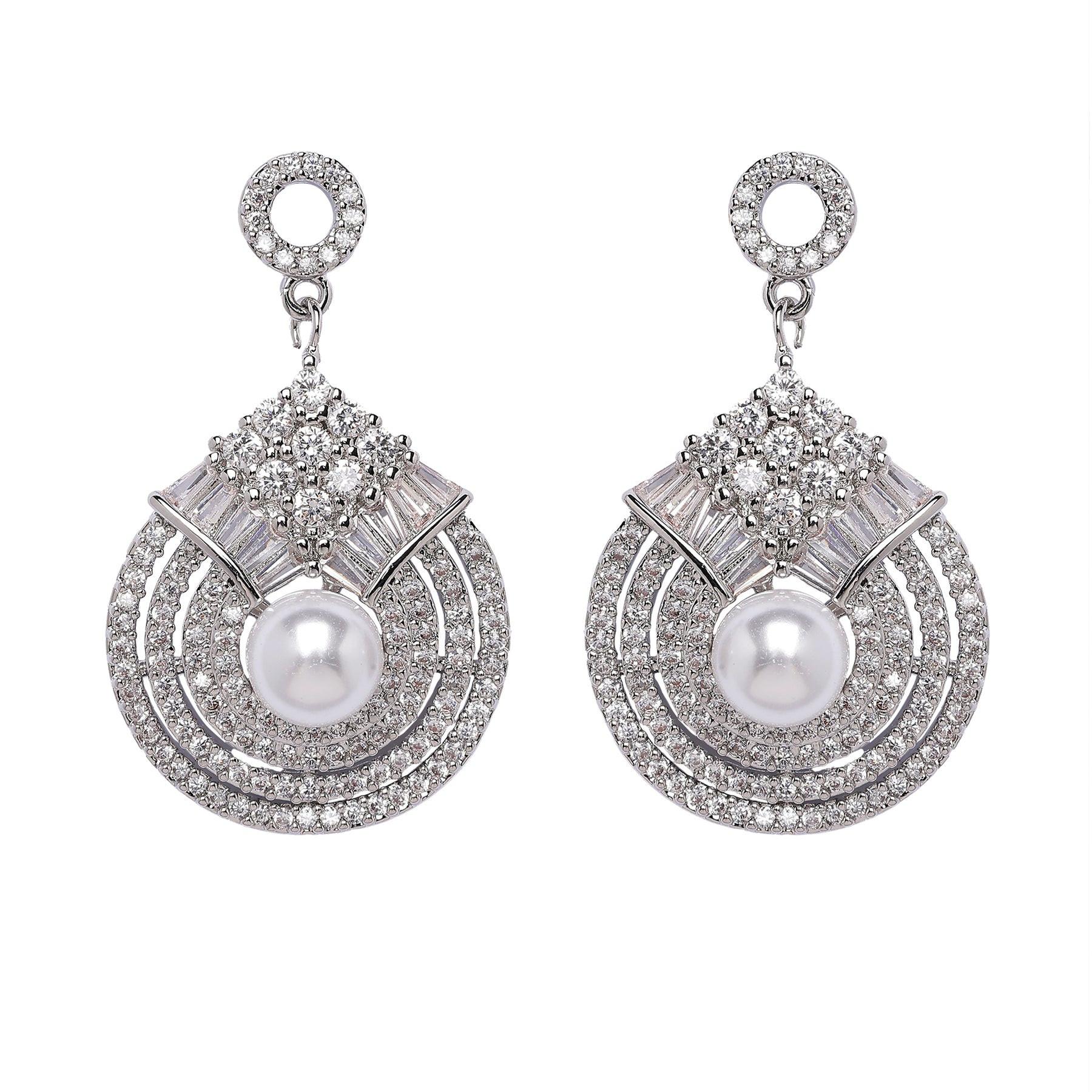 Bereit für einen verführerischen Auftritt? Diese exquisiten Ohrringe werden Sie begeistern! Stellen Sie sich eine schimmernde Perle vor, eingebettet in einen Kranz funkelnder Steine, die an einem zarten Kreis hängt. Sie verkörpern Eleganz und strahlen Selbstbewusstsein aus. Ideal, um jedem Outfit einen Hauch von Glamour zu verleihen – ob für einen glamourösen Abend oder um Ihrem Alltagslook mit etwas Glanz das gewisse Etwas zu verleihen. Größe: 2,1 cm x 3,4 cm | Beschichtung: Rhodiumplattiert | Verschluss: Stecker und Rückseite