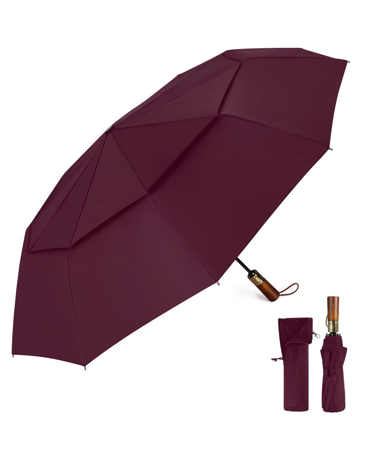 Alopini, Automatischer großer sturmsicherer Regenschirm, Taschenschirm mit belüftetem Doppeldach und Holzgriff