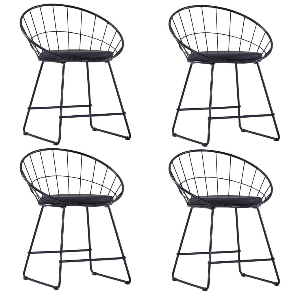 Die Stühle sind aus pulverbeschichtetem Stahl gefertigt, wodurch sie sehr stabil, langlebig und leicht mit einem feuchten Tuch zu reinigen sind. Die weichen Kissen aus Kunstleder verleihen den Stühlen zusätzlichen Komfort.