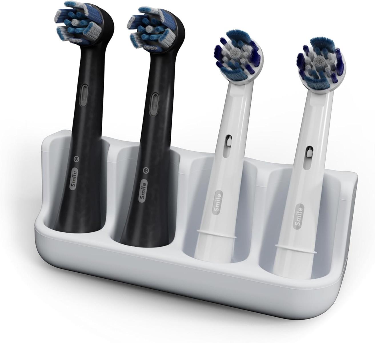 Mit dem Qikfresh Aufsteckbürstenhalter für 4 Aufsteckbürsten sorgst du zuverlässig für mehr Ordnung und Hygiene in deinem Badezimmer. Sein modernes, minimalistisches Design in Grau, Weiss oder Schwarz fügt sich harmonisch in jede Badezimmereinrichtung ein und hält Zahnbürstenköpfe sicher, sauber und griffbereit. Das intelligente Abfluss-System mit integrierter Auffangschale hält die Bürsten trocken und hygienisch sauber für maximale Frische im Alltag. Der Halter steht frei, ohne Bohren oder Kleben, und bietet Platz für bis zu vier elektrische Zahnbürstenköpfe – perfekt für die ganze Familie oder als praktische Vorratslösung. Universell kompatibel passt er zu allen gängigen Aufsteckbürsten von Marken wie Braun Oral-B, iO, Philips Sonicare und mehr. Hergestellt aus 100 % lebensmittelechtem Platin-Silikon mit matter Soft-Touch-Oberfläche ist der Halter besonders langlebig, reissfest, spülmaschinenfest und sterilisierbar. Mit seinen kompakten Massen von 106 × 48 × 41 mm findet der Aufsteckbürstenhalter problemlos Platz auf kleinen Ablagen oder im Reisegepäck. Der Lieferumfang umfasst einen Aufsteckbürstenhalter aus Silikon für vier Bürstenköpfe.