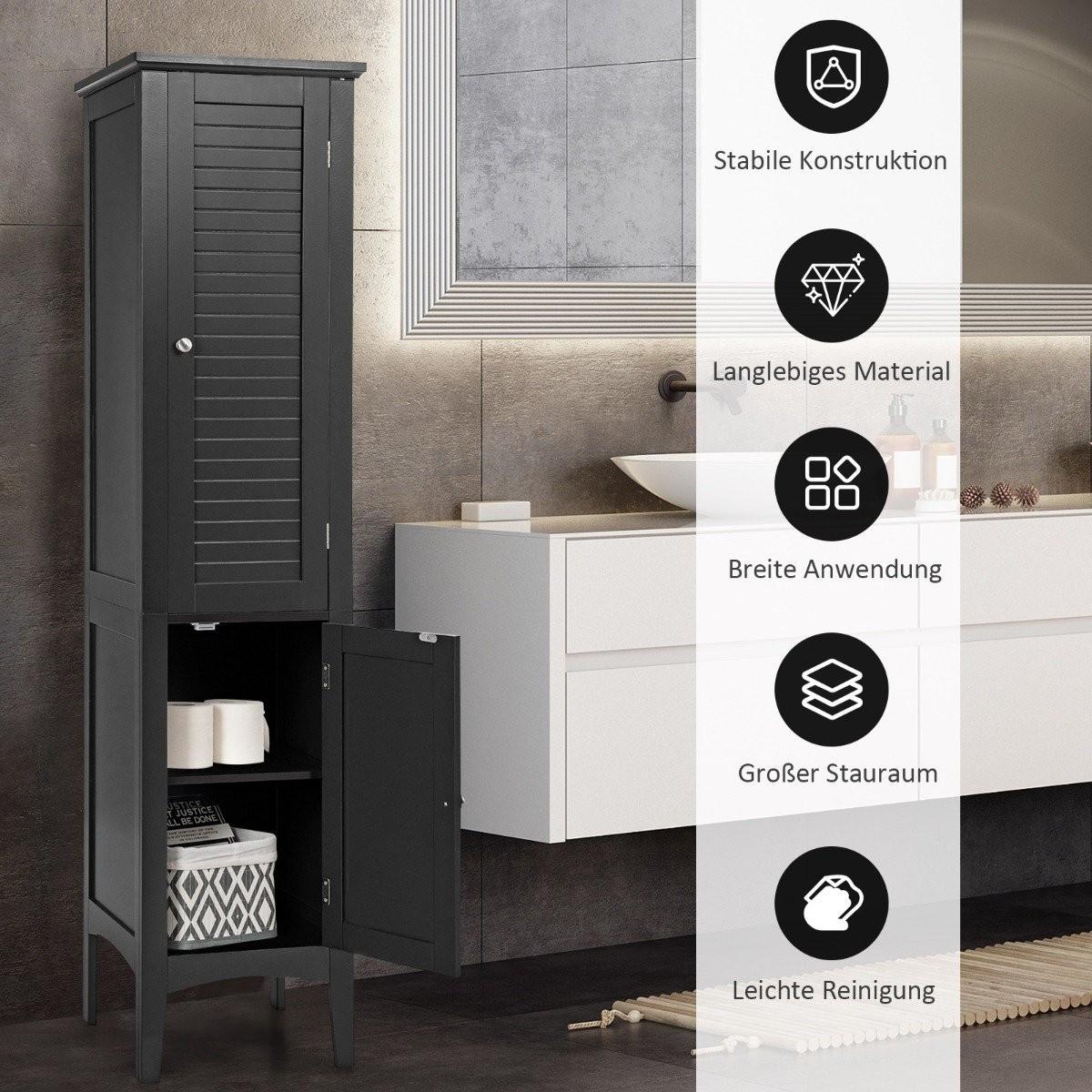 Northix Badezimmerschrank mit 5 Fächern & 2 Lamellentür & Regalen & Kippsicherung Schmaler Hochschrank Schwarz