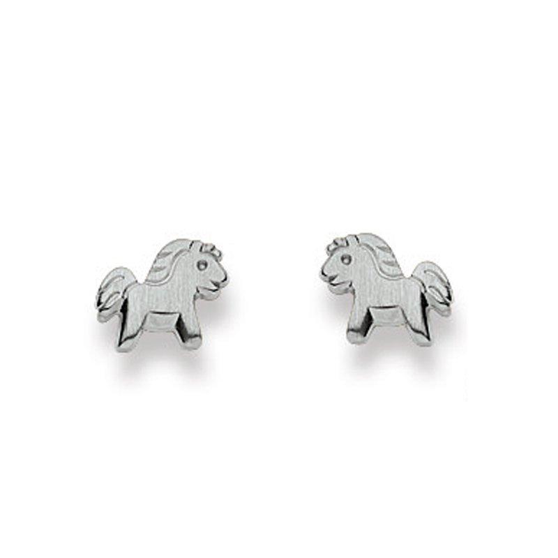 MUAU Schmuck Ohrstecker Pferd Weissgold 750, 7mm