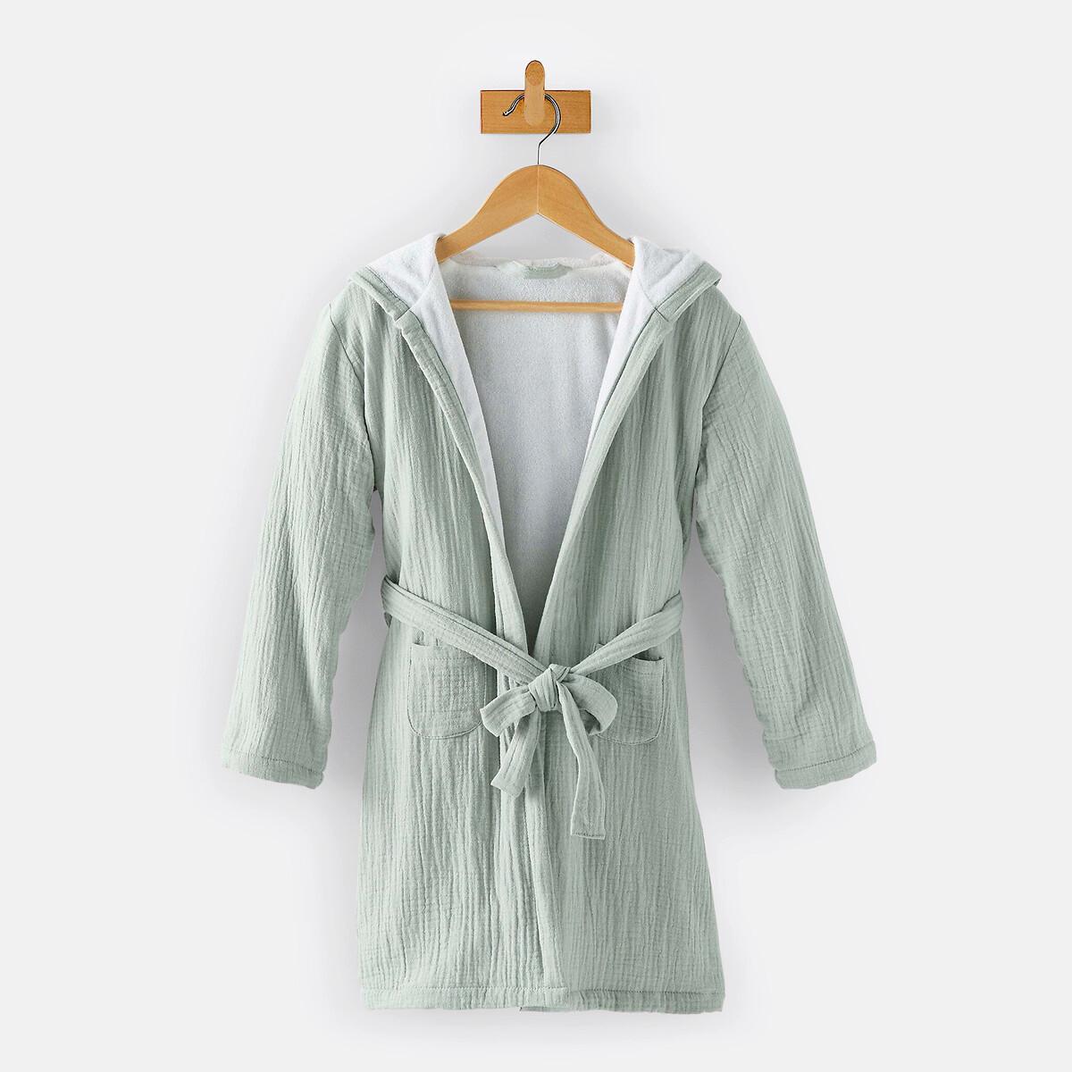 Kinder-Bademantel Kumla. Superbequem und in trendigen Farben erhältlich: In diesen Bademantel aus Baumwoll-Musselin kann sich Ihr Kind warm einkuscheln.