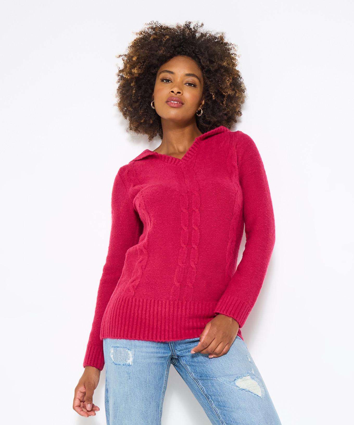 Joe Browns, Himbeerfarbener Kapuzen Zopfpullover