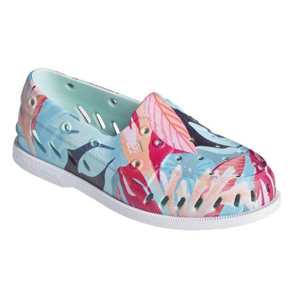 Gewebetechnik: Adaptives Wave-Siping, Flexibel, Leicht. Obermaterial: Eingespritztes EVA. Marke: Sperry. Zum Anschlüpfen. Einlegesohle: Strukturiert. Laufsohle: Nicht abzeichnend, Gummi. Absatz: Flach. Design: Floral, Logo. Zehenstil: Rund.