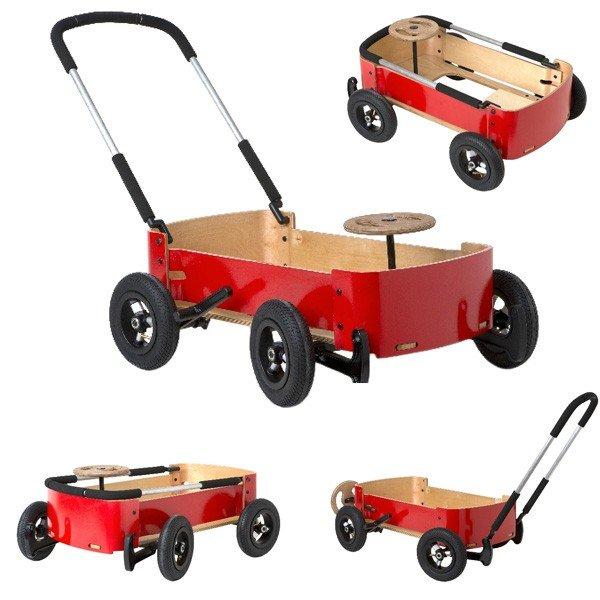 Die Verwandlungskünstler von Wishbone präsentieren hier ein Meisterwerk! Ein Wagen zum Ziehen, Stossen oder als Seifenkiste. Der rote Allrounder lässt sich spielend leicht umwandeln, ganz ohne Werkzeug.