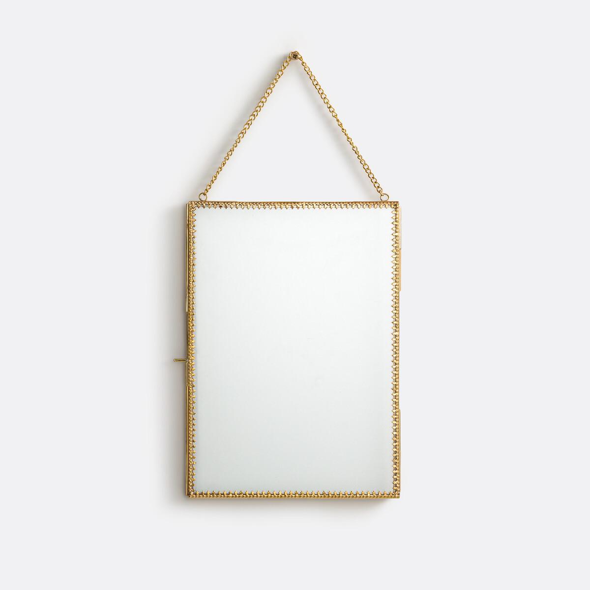 Hübsche Retro-Linie, der Hängerahmen Uyova wird handwerklich hergestellt, aus Glas und Messing. Mit seinen Rändern im Pik-Ass-Muster können Sie ihn leer lassen, um einen selbstbewussten Deko-Aspekt zu erhalten. Oder ziehen Sie eines Ihrer Lieblingsfotos hinein.