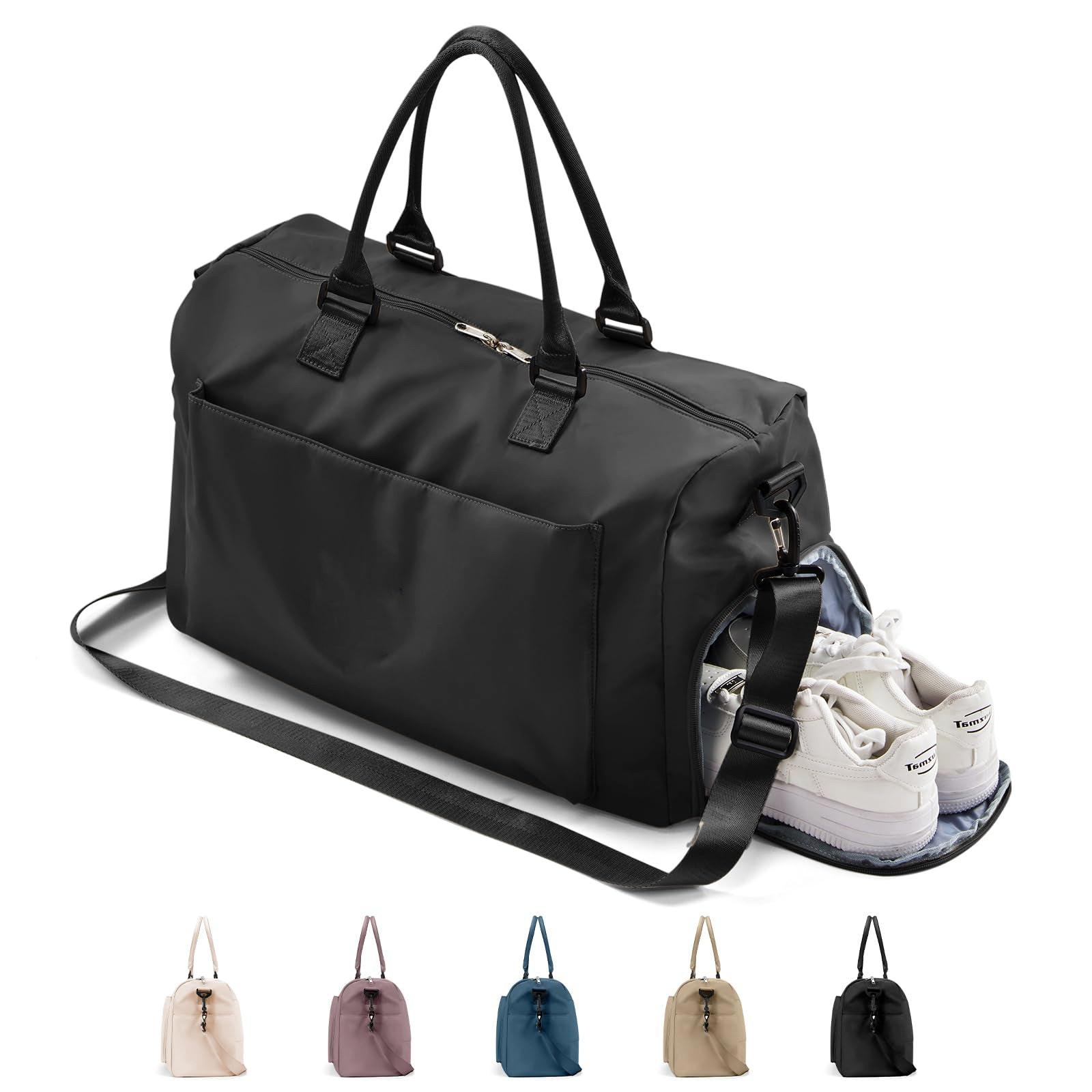 * Die Reisetasche misst 38 x 20 x 48 Zentimeter und verfügt über ein Hauptfach, eine Fronttasche, eine Seitentasche, drei Netztaschen und eine Diebstahlsicherung mit Reißverschluss. Darüber hinaus ist diese Sporttasche mit einem wasserdichten Fach und einem separaten Schuhfach ausgestattet. Das wasserdichte Fach besteht aus hochdichtem, wasserdichtem Material, um trockene und nasse Gegenstände zu trennen, während das separate Schuhfach eine bessere Aufbewahrung für Schuhe ermöglicht. * Diese Reisetasche für Frauen ist aus hochdichtem Nylonmaterial gefertigt, das weich und bequem ist und Spritzwasser oder leichten Regen effektiv abhält. Sie hat eine gewisse wasserabweisende Funktion. * Diese Reisetasche hat eine Anti-Diebstahl-Reißverschlusstasche auf der Rückseite, in der Sie wichtige Gegenstände aufbewahren können, um sie vor Diebstahl zu schützen. Außerdem verfügt sie über einen Gepäckriemen, mit dem Sie die Tasche sicher an Ihrem Koffer befestigen können. Dieses benutzerfreundliche Design macht Geschäftsreisen und Reisen viel bequemer! * Diese Reisetasche kann als Sporttasche, Handgepäcktasche, medizinische Tasche, Geschäftsreisetasche, Picknick- und Campingtasche, Weekender-Übernachtungstasche dienen und ist auch ein großartiges Geschenk für Anlässe wie Geburtstage, den Internationalen Frauentag, Weihnachten, Thanksgiving und mehr.