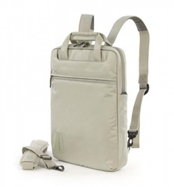 Schlanke Tasche für MacBook Pro/Air 13" die auch als Rucksack getragen werden kann. Die Tasche ist mit einem innovativen Anti-Shock-System ausgestattet: Die Standardpolsterung wird durch zusätzliche stoßdämpfende Innenpolster ergänzt, die vor Stößen und Schlägen schützen. Die ausziehbare Tasche bietet ausreichend Platz für das Zubehör, inklusive Schnellzugriffsfächer vorne und hinten. Gepolsterter, abnehmbarer Schultergurt mit griffigem Design. Praktische Drehclips am Karabinerhaken an beiden Enden verhindern ein Verdrehen des Gurtes. Griffe können bei nicht benutzen in den Schlitzen eingeschoben und so verstaut werden.