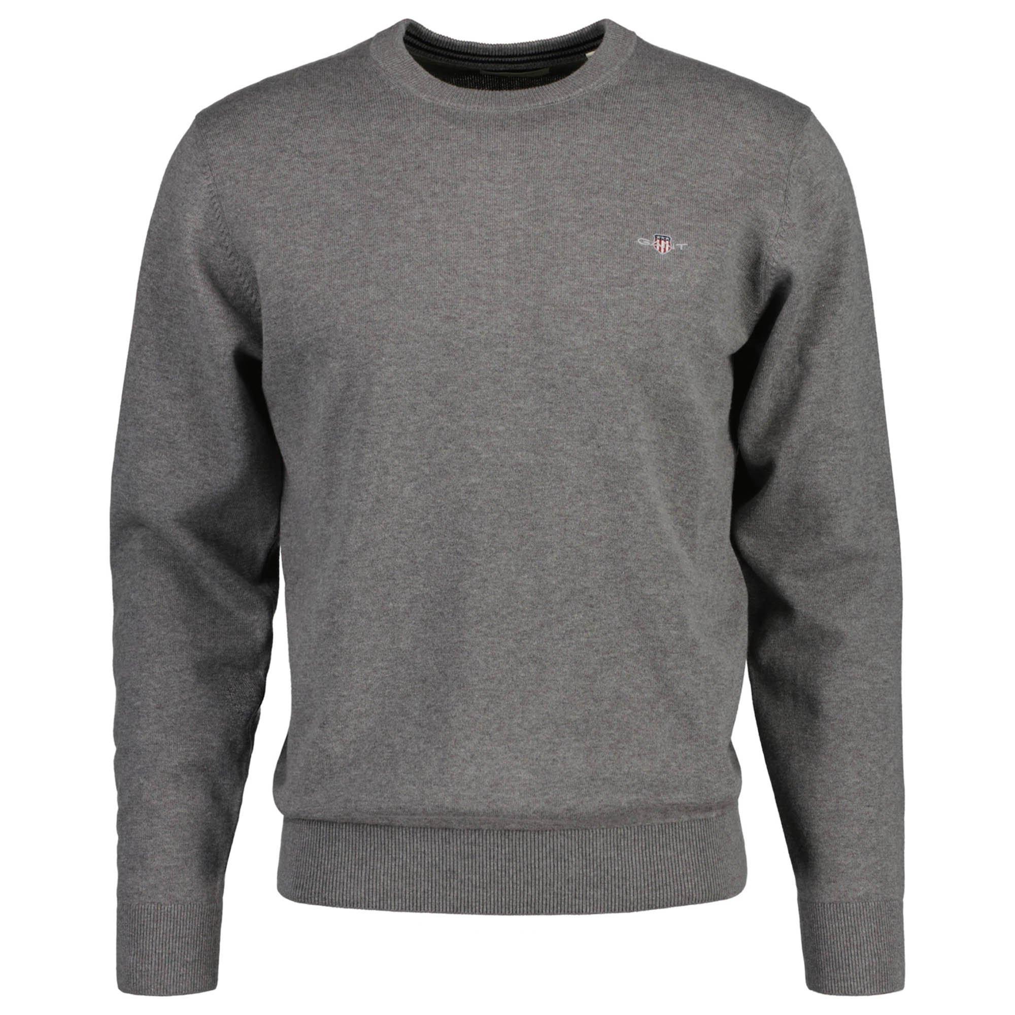 Dieser strapazierfähige und edle Herrenpullover ist aus 100 % Baumwolle gefertigt. Das normal geschnittene Modell hat einen Rundhalsausschnitt sowie einen gerippten Saum und gerippte Bündchen. Abgerundet wird das Design durch eine GANT-Wappen-Grafikstickerei auf der Brust.