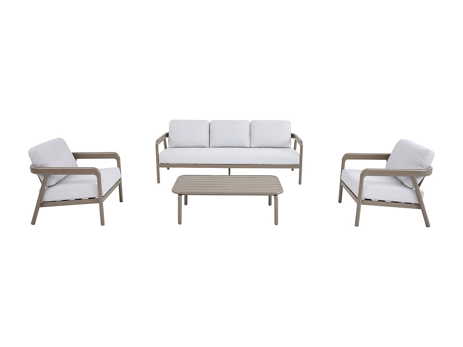 Dieses Möbelset wurde entworfen, um sich nahtlos in einen Garten, auf eine Terrasse oder einen gestalteten Außenbereich einzufügen und eignet sich sowohl für persönliche Entspannungsmomente als auch für gemeinsame Stunden.