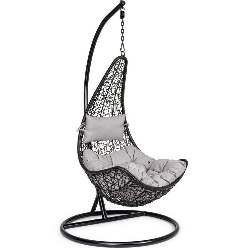 Gestell aus pulverbeschichtetem (Polyester) Stahl, Kunstfasergeflecht (4,2 mm). Nicht abnehmbarer Kissenbezug aus Polyester. max. Tragkraft: 100kg. Hängesessel zu montieren.