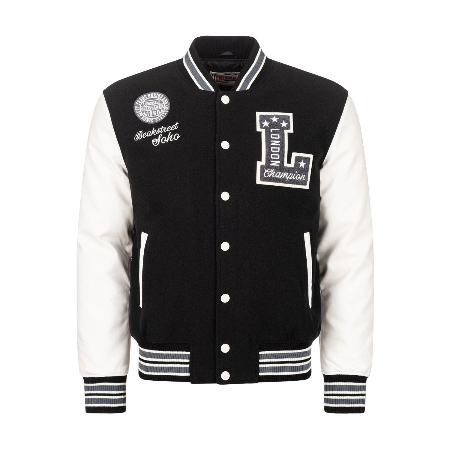 Diese Bomberjacke präsentiert sich in einem klassischen Design mit kontrastierenden Ärmeln sowie gerippten Bündchen und Saum. Sie ist mit gestickten Aufnähern auf der Brust verziert, die dem Kleidungsstück eine unverwechselbare Note verleihen.